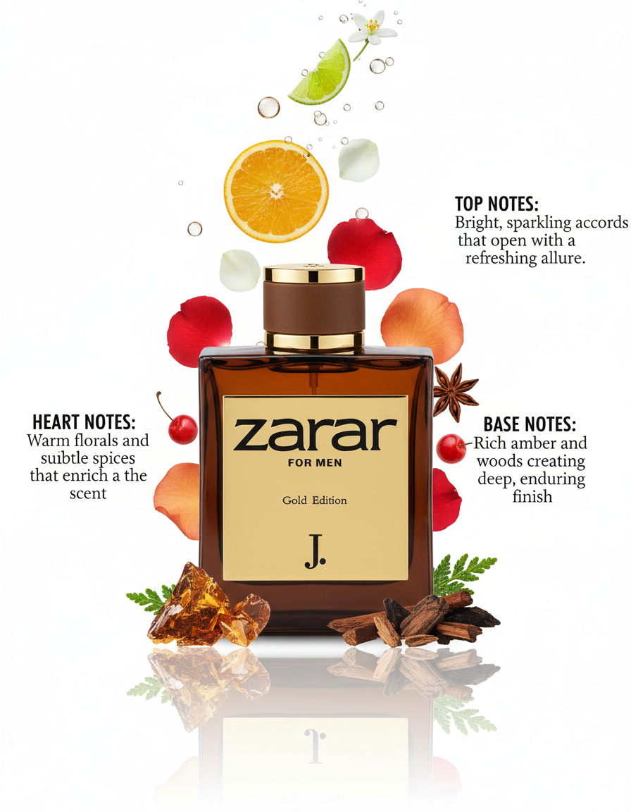 Zarar Gold by J. is a captivating Eau de Parfum that exudes luxury, confidence, and charm. Crafted for individuals who appreciate refined, opulent scents, this perfume blends exquisite notes into a long-lasting aroma that leaves a memorable impression.